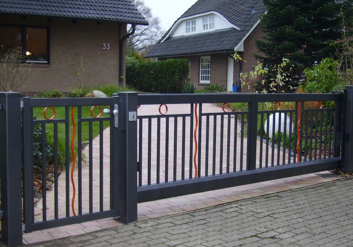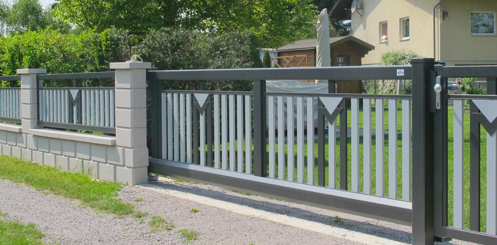 Tor und Zaunfeld mit Ornament Triade in 2 Farben.