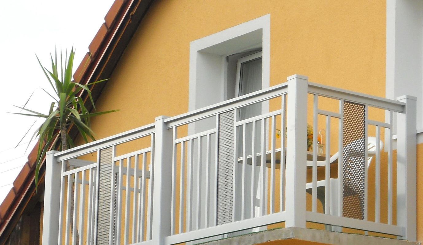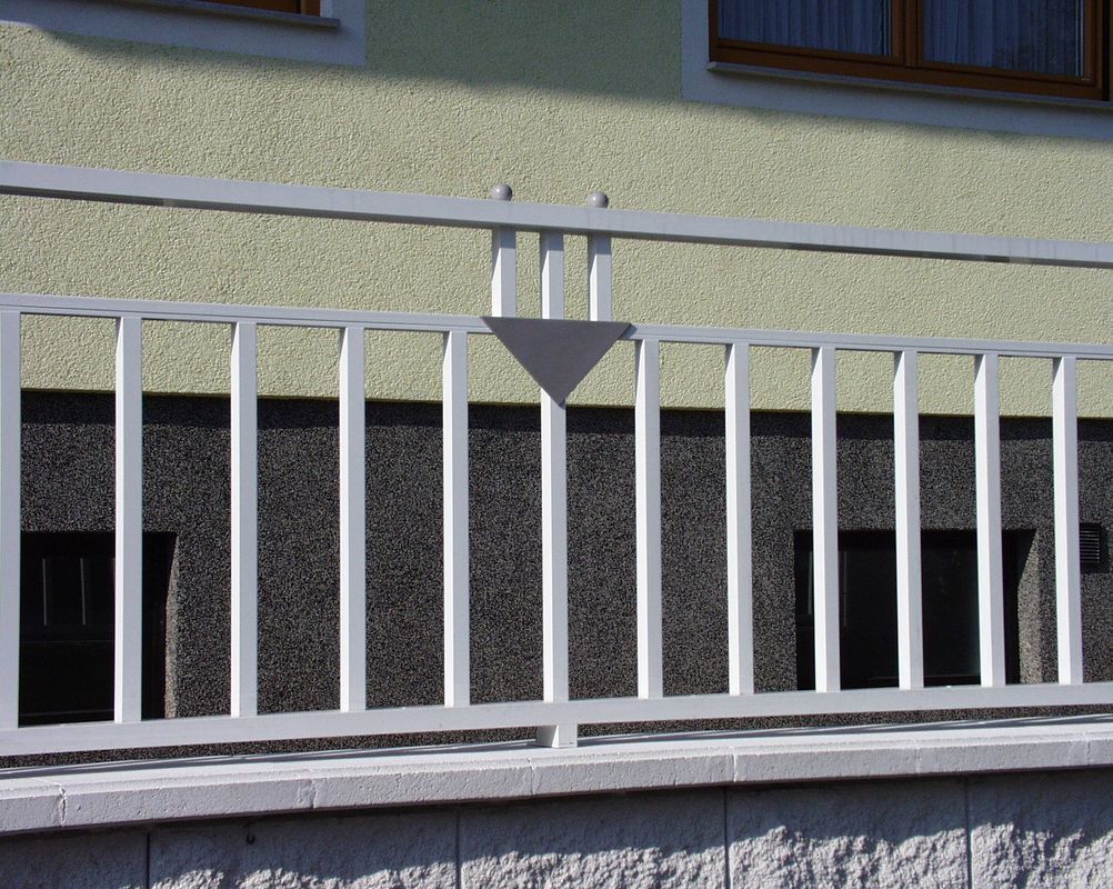 mit Rahmen-oben. Ornamente Perfor-Lochblech und Triade kombiniert. Balkonblende als Extra