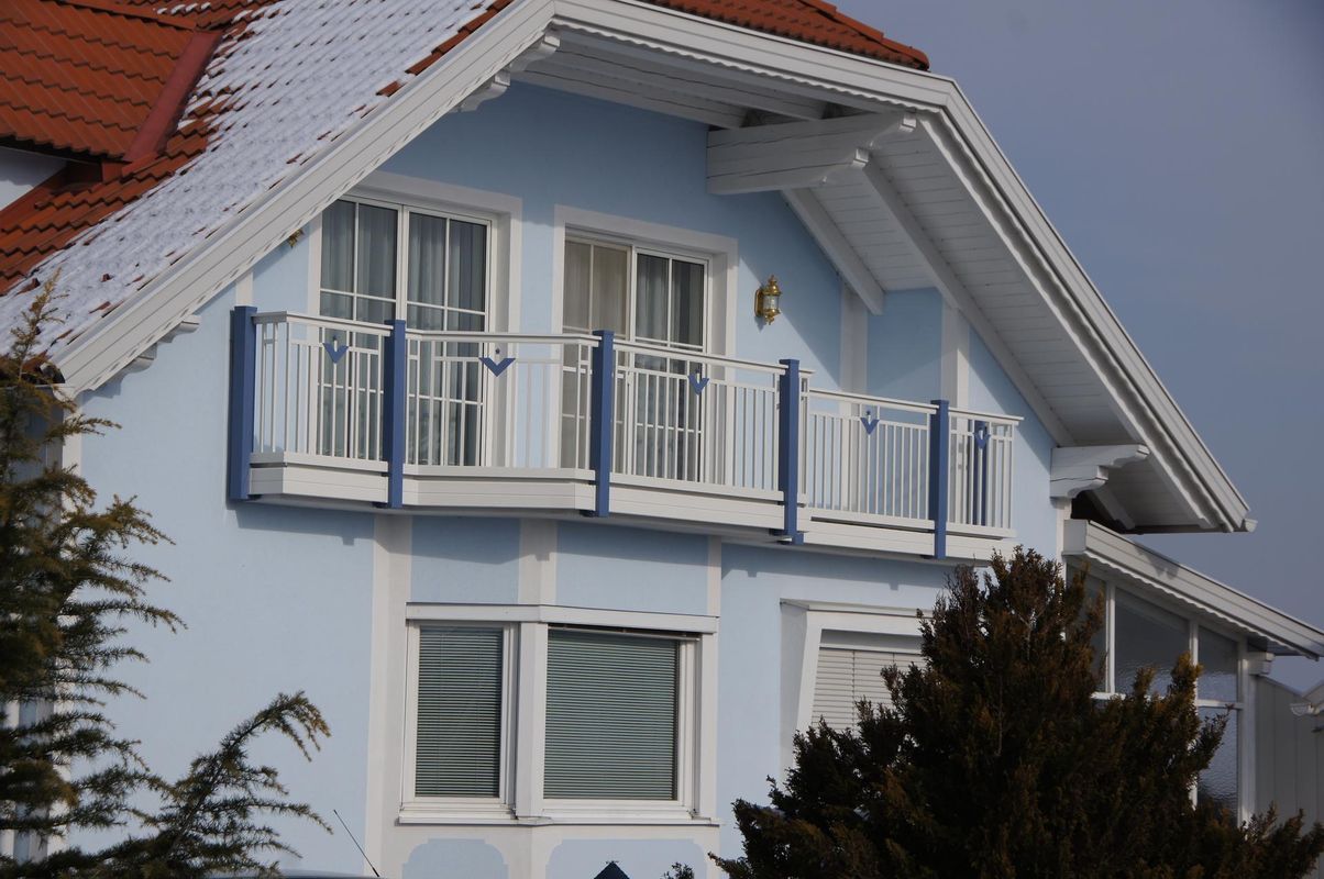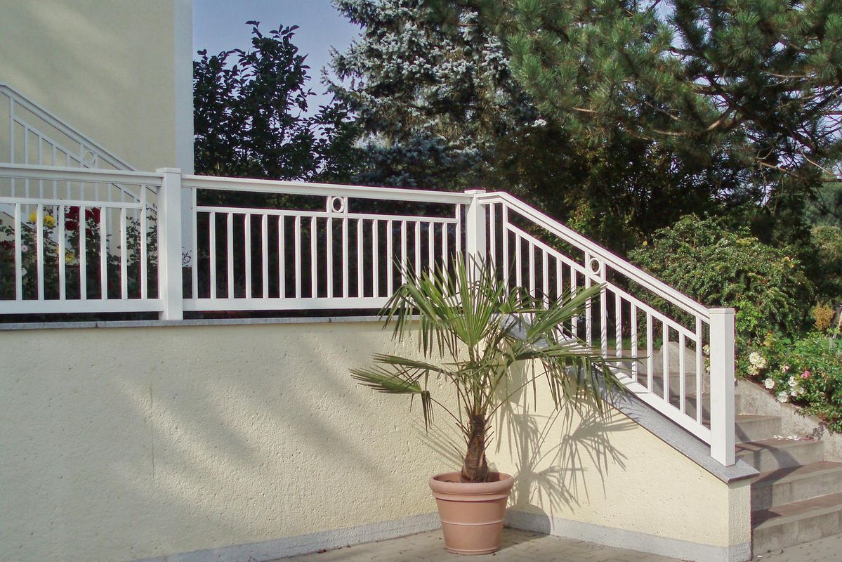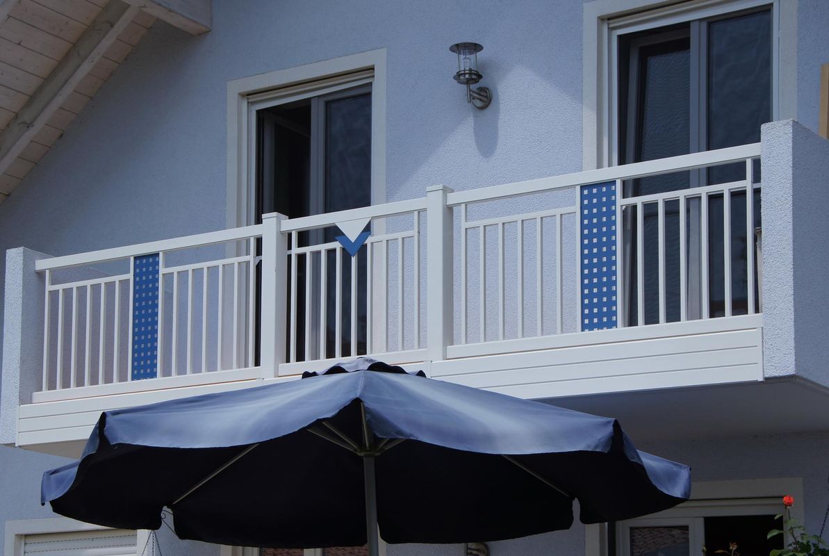 mit integriertem Handlauf, Ornament Palito in alternativer Farbe, Balkonblende als Extra.