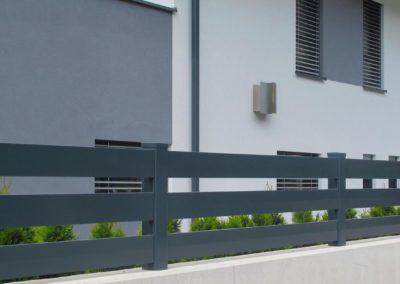 Flügeltor und Zaun mit Stäben 60, teilweise in Schmuckfarbe.