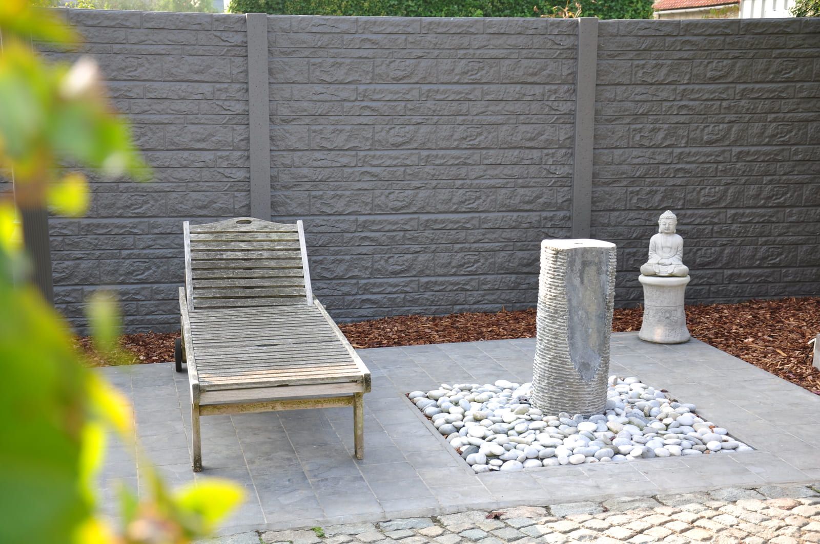 Linea Betonzaunsystem mit einer Liege