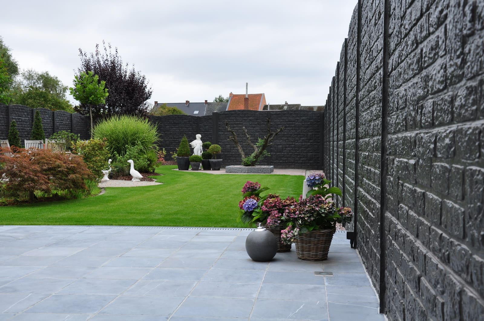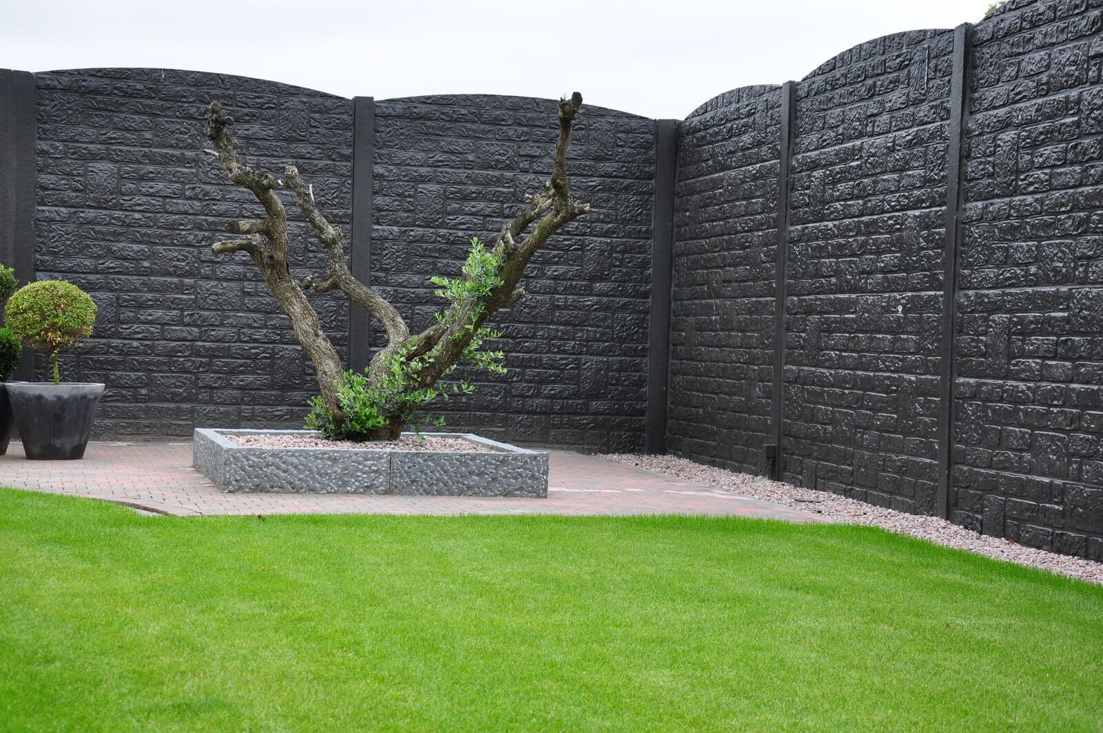 Beispielbild eines Roma Anthrazit Betonzaunsystems